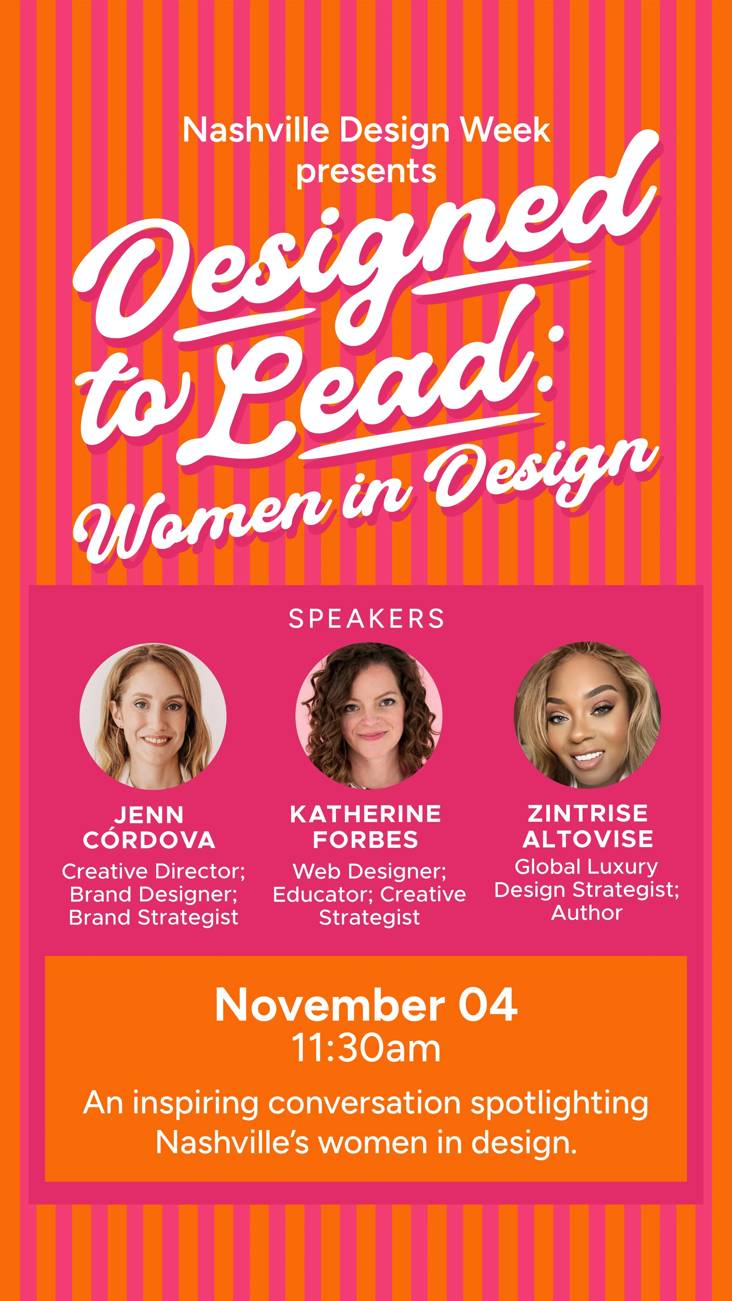An inspiring conversation spotlighting Nashville’s women in design. This multi-industry panel of female leaders will share how they define design, navigate their careers, and empower the next generation of creatives across the city’s vibrant design community.